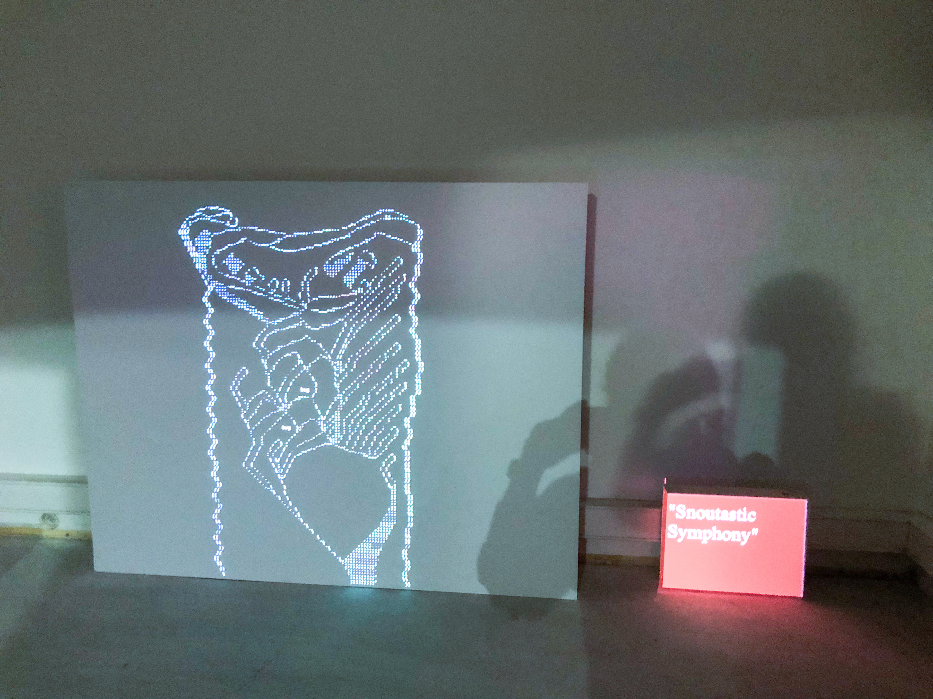 Projekce, instalace, při jejíž tvorbě jsem byl vlastně nejvíc ‘sám sebou’ kterým jsem několik posledních měsíců (programátor) a ve které se zároveň i umělá inteligence jako nástroj drží nejvíce své interaktivní byť abstraktní formy.